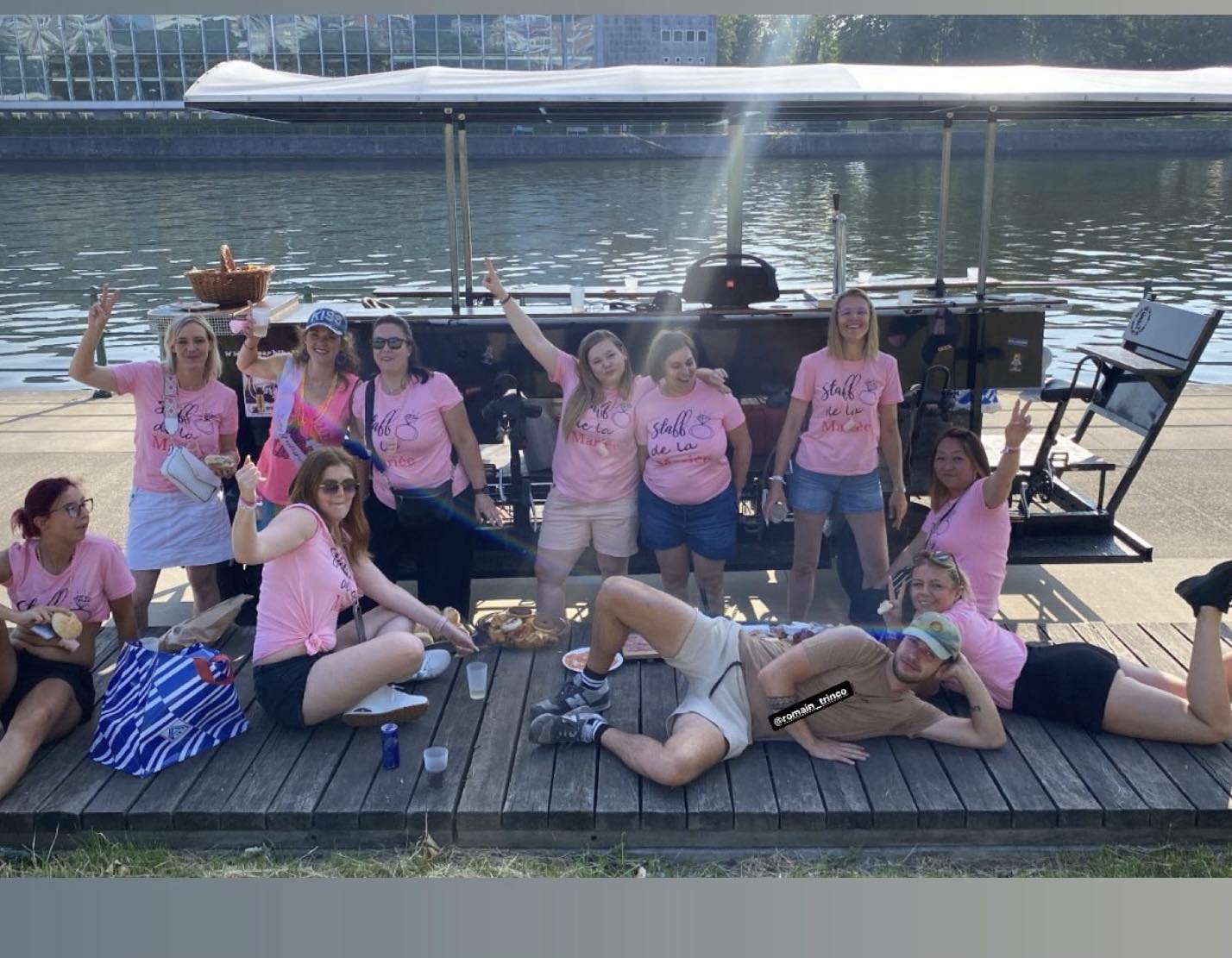 90 min de pédalage festif dans l'hypercentre. La mariée ou le marié est au centre, entouré·e de ses proches.